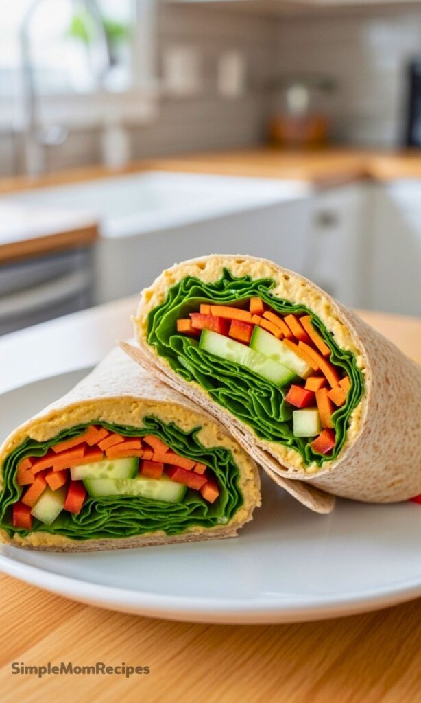 I started making hummus veggie wraps on days when I honestly didn’t feel like cooking anything. You know those afternoons where you open the fridge, stare at it for a while, and hope food assembles itself? That was the mood. I had a tortilla, half a tub of hummus, and a couple random vegetables that needed to be used.