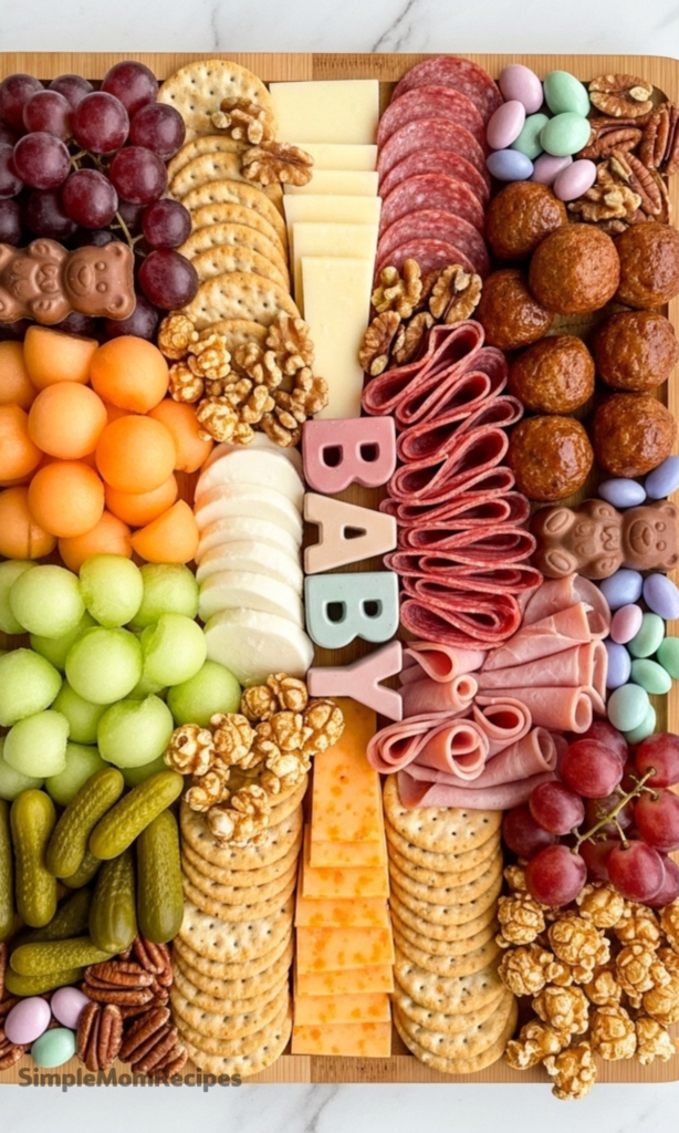 The true joy of a charcuterie board is its flexibility. If you’re celebrating a specific gender, incorporate color through fruits like strawberries or blueberries for a girl, or green grapes and kiwi for a boy.