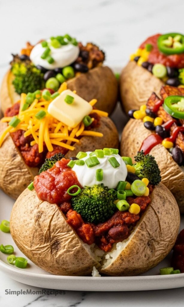- Vegetarian Chili (2 cups): A hearty, protein-packed option that turns the potato into a full meal.