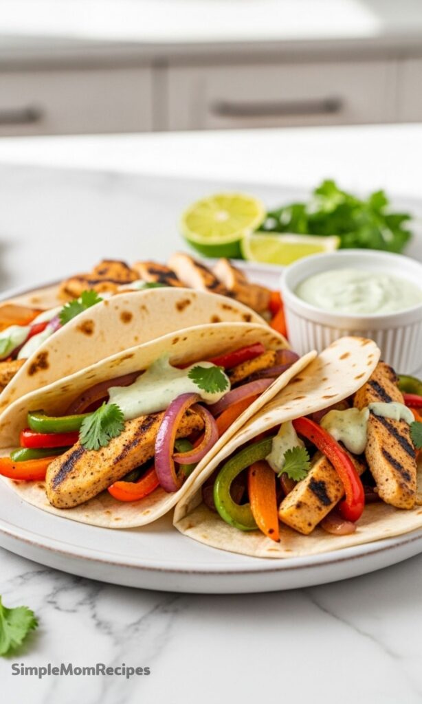 And honestly, it’s the kind of dinner that feels flexible. Some nights I pile everything into warm tortillas. Other nights I throw the chicken and veggies over rice and call it a fajita bowl. Same recipe, totally different mood.