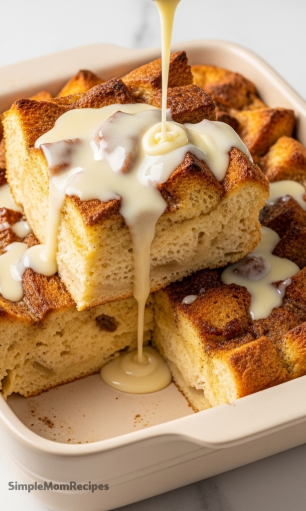The final product is soft and custardy on the inside, with just the right amount of gentle spice from cinnamon and nutmeg. And then, of course, there’s the vanilla sauce. It’s a simple pour that takes every bite from delicious to absolutely decadent. This is the kind of dessert that makes your kitchen smell incredible and brings everyone to the table.