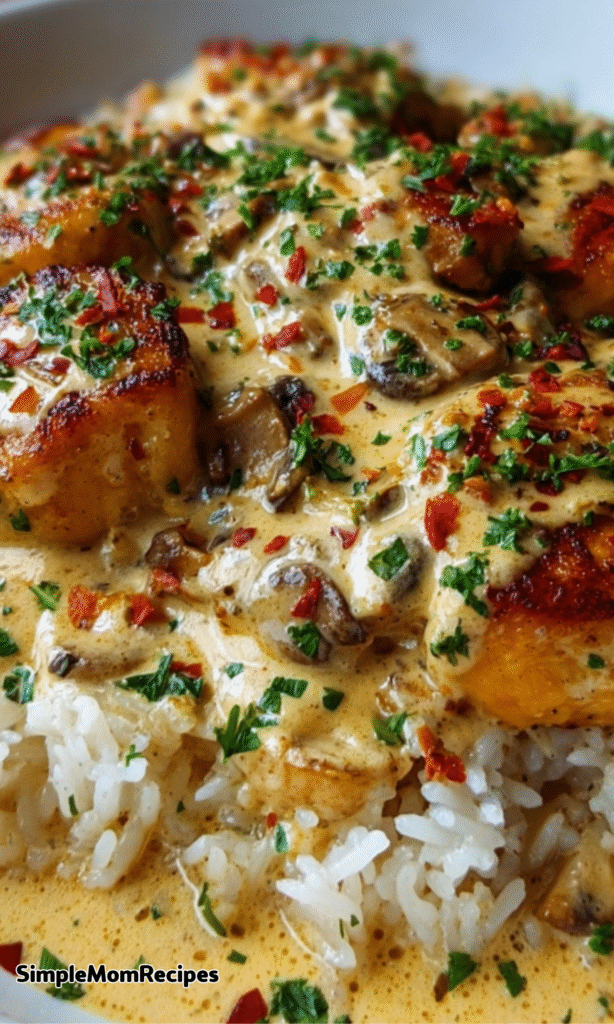 Plate your fluffy rice in serving bowls or on individual plates. Top with the smothered chicken and that incredible sauce. Don’t forget to garnish with fresh chopped parsley – it adds a pop of color and freshness that balances the rich creaminess.
