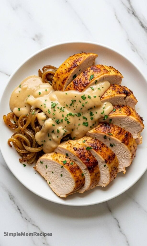 Slice the rested turkey breast against the grain into beautiful, even slices. Arrange them on a platter, and serve that glorious gravy on the side in a warm pitcher or bowl.