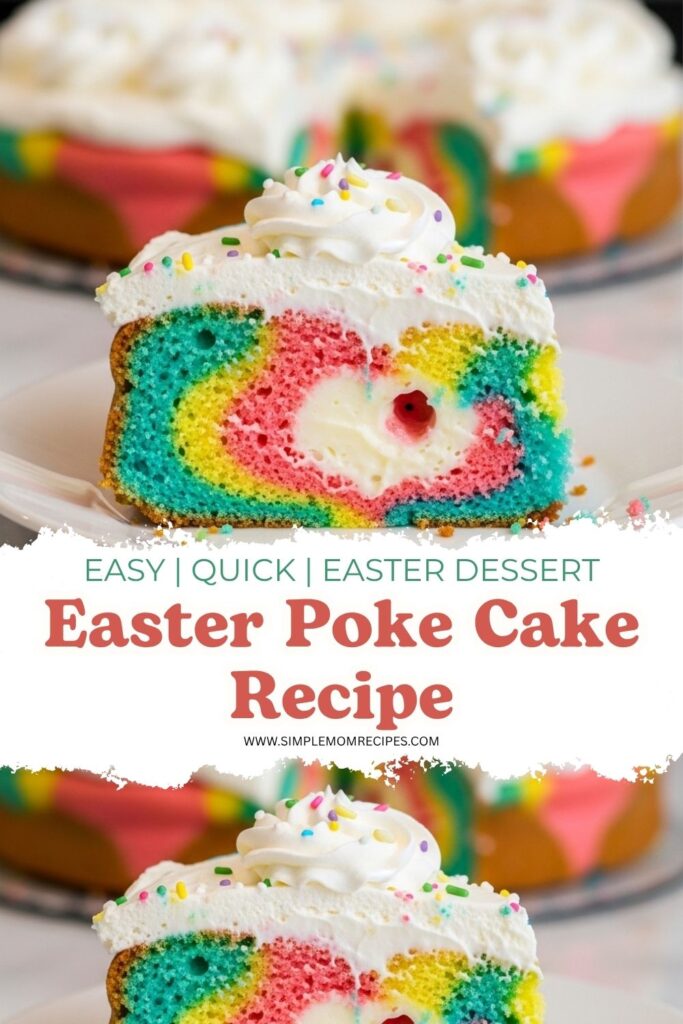 Easy Easter Poke Cake with colorful swirls, creamy pudding filling, and fluffy whipped topping. A fun, simple dessert that feels special without much effort.