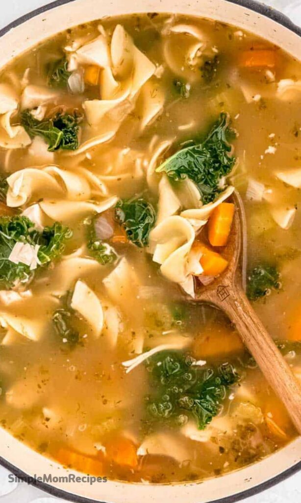 The broth is rich and savory, the vegetables have a slight sweetness, and the chicken is wonderfully tender. And those egg noodles? They’re like little soft pillows of comfort, soaking up all that incredible flavor.