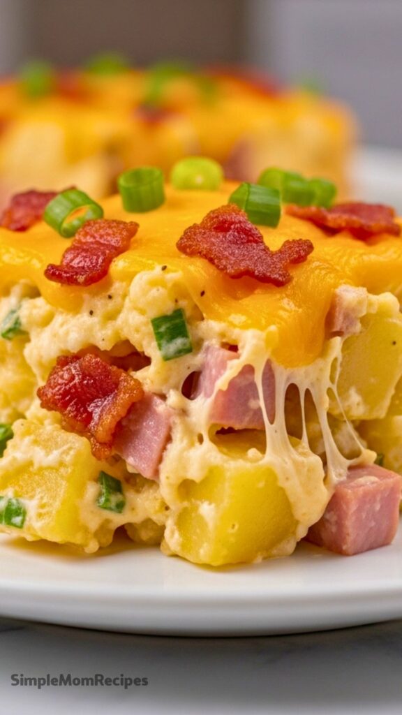 Hearty, creamy, and loaded with flavor, these cheesy potatoes feature tender diced potatoes, savory ham, crispy bacon, and melted cheddar cheese. A comforting side dish perfect for any gathering.
