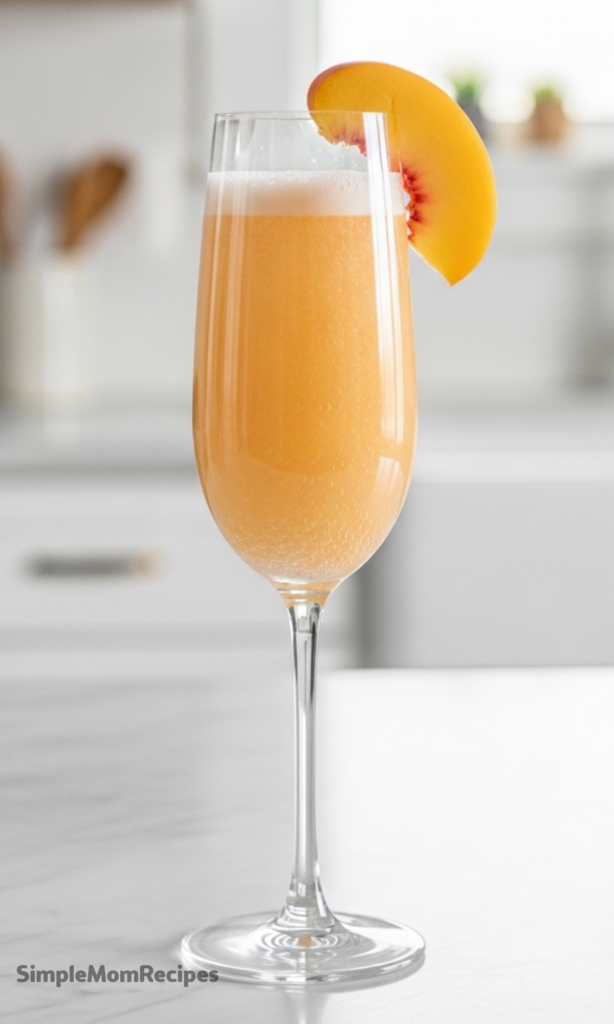 Don’t over-stir. One gentle mix is enough. Too much stirring flattens the sparkle, and then you just have peach juice with wine.