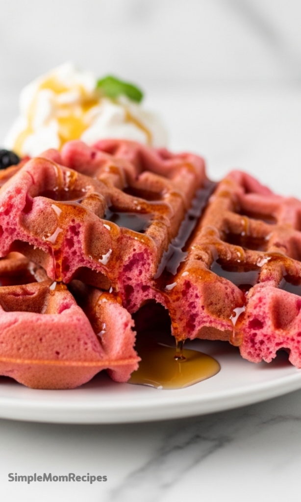 These pink velvet waffles started as a small weekend experiment and somehow turned into one of those recipes people ask for again and again. They look playful, almost dramatic on a plate, but the flavor is what keeps them from feeling like a gimmick.