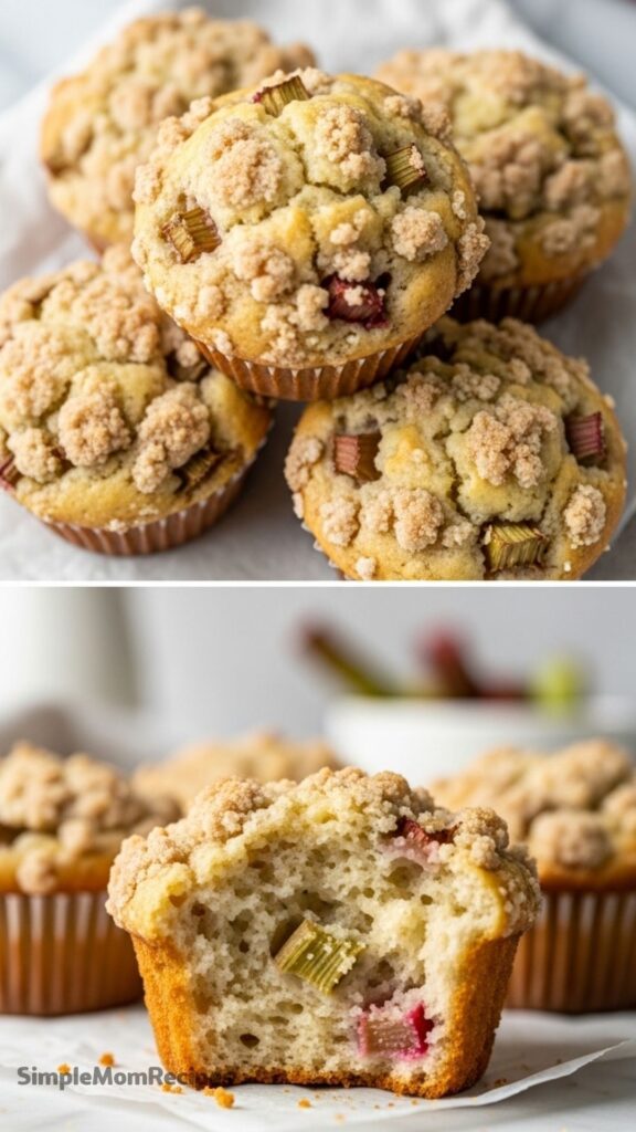 Tips: Tossing rhubarb in flour prevents sinking. Do not overmix the batter to keep muffins tender.