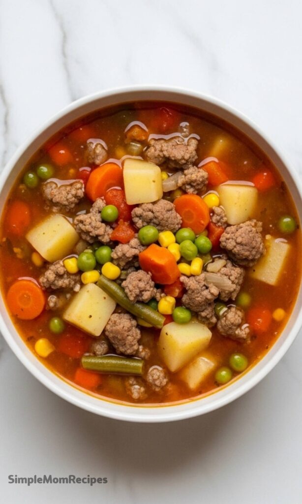 This classic Vegetable Beef Soup is hearty, budget-friendly, and packed with colorful vegetables, tender ground beef, and a rich, savory broth. Perfect for chilly days or when you need a comforting, nourishing meal without the fuss. Made with pantry staples and a frozen veggie mix to save time, it’s a go-to weeknight dinner that’s as delicious as it is affordable. Serve it with crusty bread for the ultimate cozy meal!